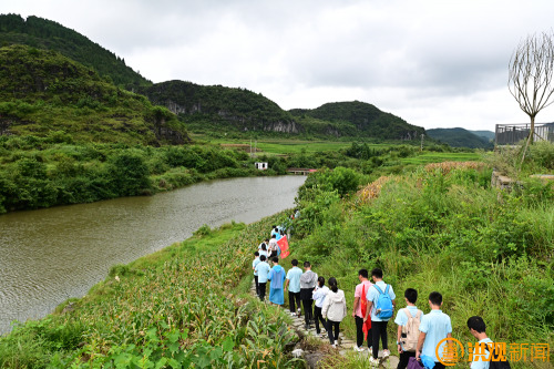 8月21日下午,学生们在带队老师的带领下,走进长征国家文化公园兵临贵阳展示园。该园以高坡乡为主体,集聚了高坡红军牺牲地、高坡红军居住地、高坡红军标语等长征遗址、遗迹。园内的花溪红军长征历史步道高坡至黔陶段全长9公里,连接5个行政村,分为水面、村庄、田埂等8种类型。