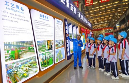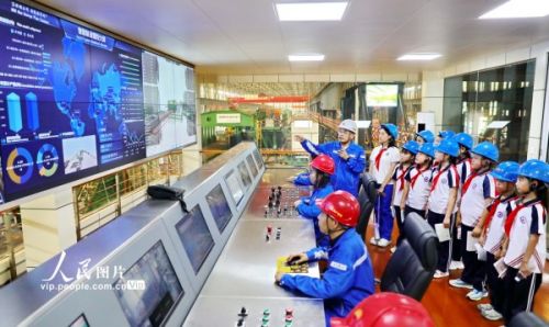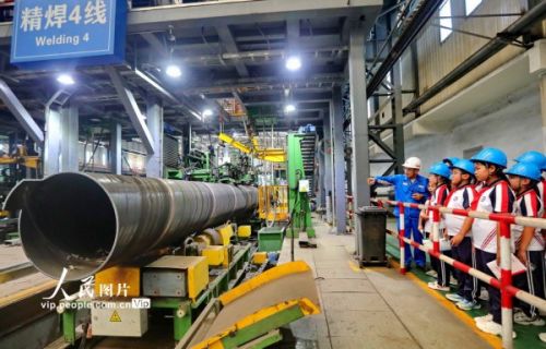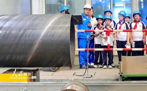 2025年8月22日,共青团河北省秦皇岛市海港区委、海港区少工委、黑山咀“乡村振兴”驻村工作队、杜庄学区王庄小学联合开展“对话大国重器 探秘新质生产力”研学实践活动。该活动由学校教师带领部分学生走进该市一家制造企业新能源管材生产线、创新工作室等地,通过现场参观、互动交流等方式,旨在培养学生对科学技术的兴趣,学习新质生产力中的创新精神与匠人精神。曹建雄摄(人民图片网)