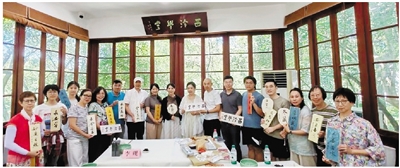 值得关注的是,本次游学是香港“西泠学堂”暑期游学班第五次走进西泠印社。“自2018年起,我们每年都会组织香港学员、青少年与艺术爱好者来到杭州。”集古斋有限公司副总经理祝琳华介绍,本次游学团成员有第三届“西泠杯”获奖学生、西泠学堂学员,还有参与西泠学堂书法《千字文》校园计划的书法导师。“在游学中,学员们既能邂逅西湖美景,又能深度感受西泠印社的文化底蕴与独特魅力。希望大家通过杭州之行的所见、所学、所感,燃起对中华优秀传统文化的热情,未来成为香港与内地文化交流的传播者和带动者。”
