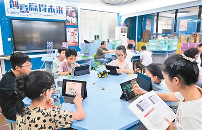 发展智慧教育,还将建设一批能力驱动、泛在智能、多模态响应于一体的未来学习中心。目前,一些中学学校也在应用智能技术打造未来学习中心,落地“没有教室的学校”“一人一张课表”。重庆市沙坪坝区树人景瑞小学校校长李华介绍:“我们通过生成式AI工具与教学平台融合,按需生成了学习小程序,实现了工具个性化设计。每一周有三节信息科技课程进入课表,全流程实施跨学科项目式学习,让因材施教成为孩子们的成长阶梯。”