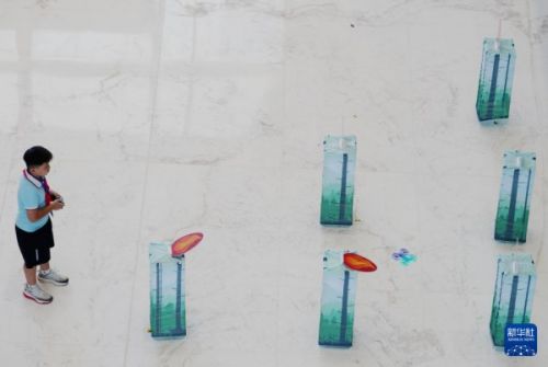 9月7日,2025年河北省石家庄市“全国科普月”科学教育实践活动在栾城区航空中心举行,小朋友参加无人机“灭火”赛。