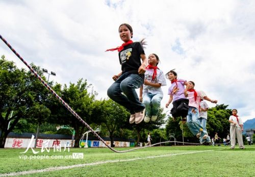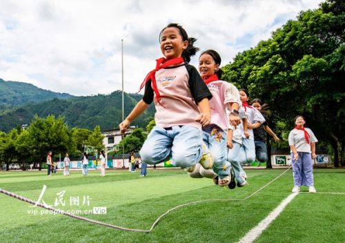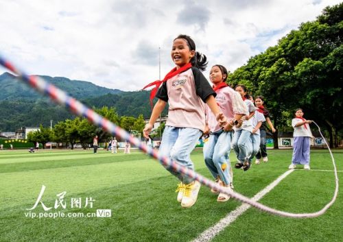 近年来,贵州省黔东南苗族侗族自治州从江县刚边壮族乡中心小学积极构建“欢乐课间”的校园文化,鼓励学生在课间时间走出教室,参加各种体育活动和趣味游戏,让学生们在享受快乐课间的同时强身健体,促进健康成长。罗京来摄(人民图片网)