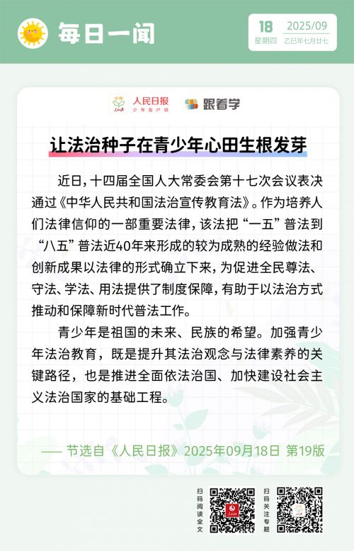 每日一闻丨让法治种子在青少年心田生根发芽
