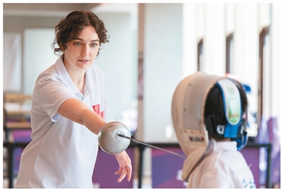 银色剑道上,孩子们两两对阵。“重心压低!”“出手快一点!”玛丽亚身着白色击剑服,注视着学员,指导他们如何在攻防转换中快速得分。