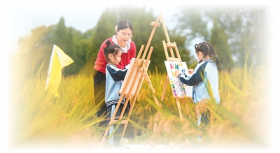 金秋时节,浙江省湖州市长兴县组织少年儿童开展稻田写生、食盐画制作等活动,描绘金秋美景,感受大自然。