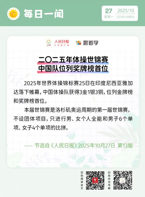 每日一闻 | 二〇二五年体操世锦赛 中国队位列奖牌榜首位