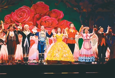 薛钦文(左三)参演的音乐剧《美女与野兽》现场。