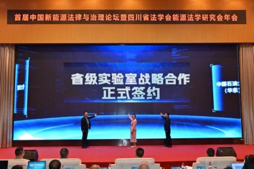 在与会嘉宾的共同见证下,山东省能源治理与法律文科实验室、四川智慧社会智能治理重点实验室和新能源高质量发展效力评估与运行分析重点实验室三家单位共同签署了省级重点实验室战略合作协议。