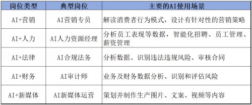 CAIE人工智能研究院:这类岗位体量比较大,我们以5类典型的AI+应用融合岗为例,说明其所需技能及学习路径,其它岗位可参考这5类典型岗位模型。先来看5类典型AI+应用融合岗的主要AI使用场景: