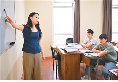 今年9月,一名中方教师在吉尔吉斯斯坦奥什国立大学孔子学院授课。