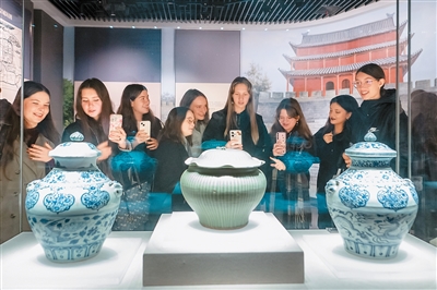 近期,安徽师范大学外国留学生应邀参访安徽省芜湖市繁昌区孙村镇中分村和繁昌博物馆,沉浸式体验中国文化与乡村魅力。图为留学生在欣赏瓷器。