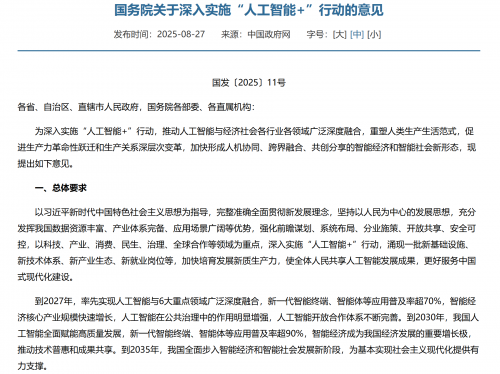 另外,还有一个重大利好消息:今年8月,国务院印发《关于深入实施“人工智能+”行动的意见》(以下简称《意见》),将“人工智能+”推向各行各业,及全社会的方方面面。这是国家继2014年“互联网+”计划之后的又一划时代战略部署,它像当年的“互联网+”一样,将全社会的生产力推向新的水平,进而创造出千千万万的“AI就业”新机会。这将是广大失业人士就业的“新蓝海”。