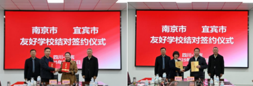 活动高潮环节,宁宜两地八所职业院校举行分组签约仪式:南京高等职业技术学校(江苏联合职业技术学院南京分院)与宜宾市职业技术学校、南京商业学校(江苏联合职业技术学院南京商贸分院)与南溪职业技术学校、南京江宁高等职业技术学校(江苏联合职业技术学院江宁分院)与宜宾市工业职业技术学校、南京金陵高等职业技术学校(江苏联合职业技术学院金陵分院)与珙县职业技术学校分别结为“东西部姊妹院校”。