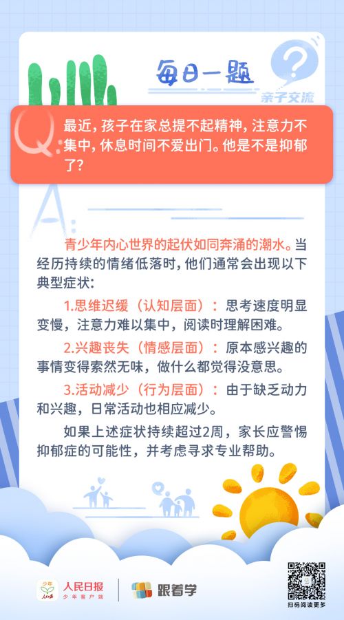 每日一题丨青少年抑郁的主要表现是什么?