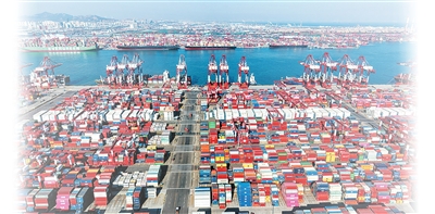 2025年12月1日拍摄的山东港口青岛港外贸集装箱码头。