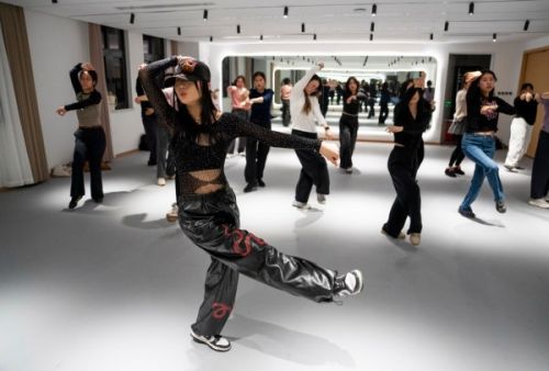 1月19日,在苏州市工人文化宫艺校楼的舞蹈房内,舞蹈老师为学员教授爵士舞。