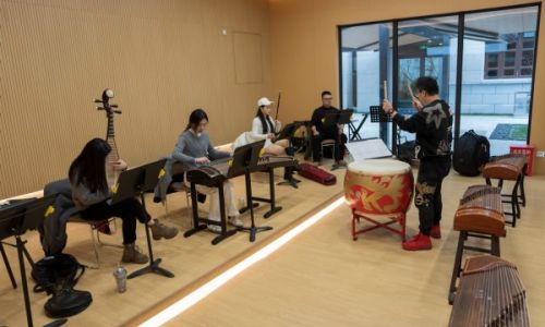 1月19日,在苏州市工人文化宫的职工音乐厅,一名苏州市职工艺术团繁星乐团的成员在练习古筝。