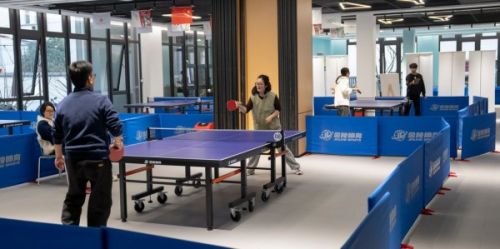 1月18日,人们在苏州市工人文化宫健身楼内打乒乓球。
