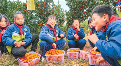 不久前,江西省抚州市南丰县子固小学把劳动课堂搬到田间地头,老师带领学生体验采摘蜜橘,学生在劳作过程中感受丰收的喜悦和劳动的乐趣。