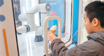 机器人现场制作冰激凌。