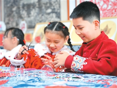 2月3日,贵州省贵阳市省府路小学开展“剪纸迎新春”活动。孩子们在老师的指导下创作以生肖“马”为主题的剪纸,感受传统年俗文化,传承非遗技艺,喜迎新春佳节。
