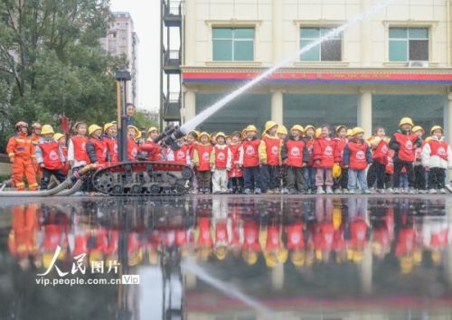 2026年3月4日,湖南省永州市道县中小学、幼儿园迎来开学。道县消防救援大队邀请幼儿园小朋友们走进消防营区开展“开学第一课”安全教育主题活动,通过学习消防安全知识、体验绳索攀爬技能和操作消防水枪等互动环节,提升孩子们的安全意识和应急避险能力。蒋克青摄(人民图片网)