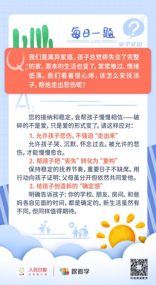 每日一题丨离异后孩子情绪低落,家长该如何安抚?