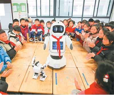 日前,在江苏省如皋市一家小学的“第二课堂”上,学生们正在学习机器人等课外知识。