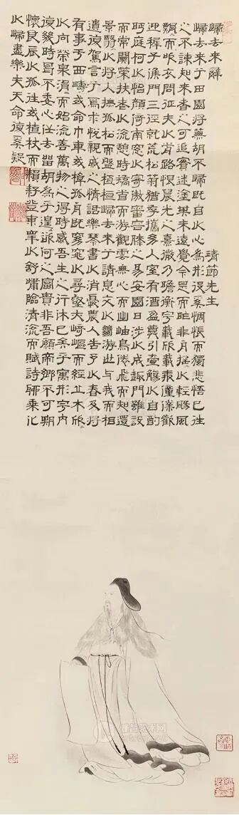 陶渊明是中国文化的瑰宝,他以崇尚自然的田园诗风与“不为五斗米折腰”的独立自由文人风骨,成为历代士大夫抒发人生理想、寄托生命情怀的精神高地。苏轼曾称赞陶诗为诗歌最高典范:“质而实绮,癯而实腴,自曹、刘、鲍、谢、李、杜诸人,皆莫及也。”这一评价被公认为古今中外对陶诗最经典的美学阐释。陶渊明独立之人格、自由之思想,以及回归自然的生活方式,为历代文人所仰慕。以和陶、绘陶为代表的文学艺术活动,使得陶渊明的形象愈加鲜明,常读常新。一代又一代的作家、诗人、学者、艺术家及志士仁人,无不惊叹这块瑰宝的璀璨与无上价值,从中汲取精神力量、净化灵魂、感受崇高与美。于是,阅读陶渊明、研究之、赞赏之、师法之、绘画之、再现之,反思自我、提升精神境界,便成为历史文化长河中长久不衰的现象。