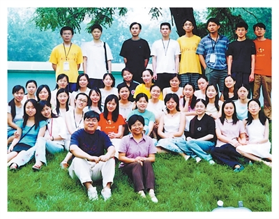 李山(前排左)早年间和师生合影。