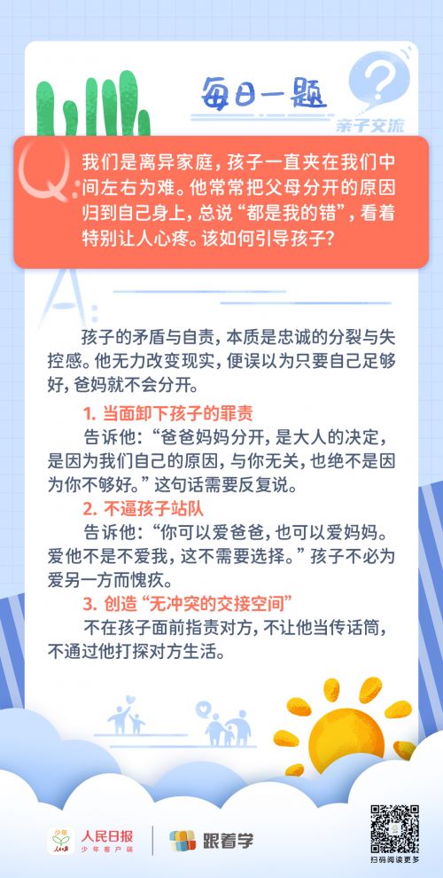 每日一题丨离异家庭的孩子夹在父母中间左右为难,该怎么办?