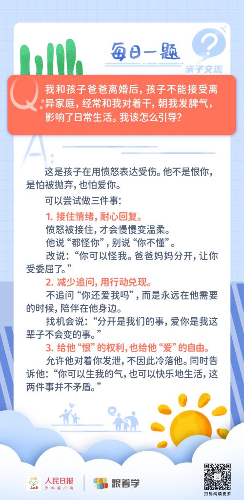 每日一题丨离异后,孩子把我当敌人,该如何引导?