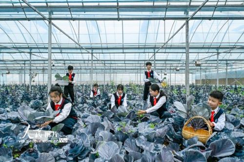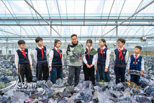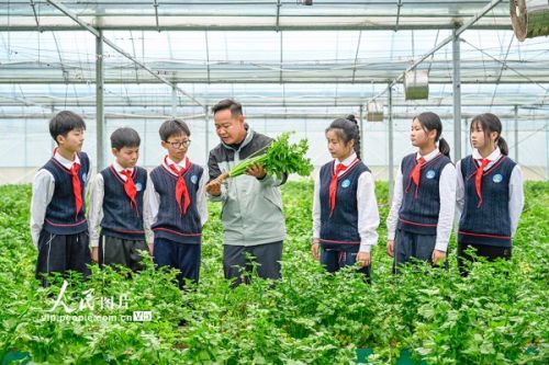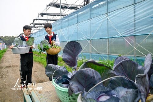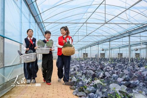 2026年4月3日,在安徽合肥庐阳区三十岗乡崔岗村喜鹿农场,合肥市古城小学的学生正在大棚里帮助农户采摘蔬菜,学习种植知识。春假期间,古城小学组织开展了“下乡助农忙,劳动促成长”主题活动。学生们走进田间地头,学习种植技术,参与蔬菜瓜果的采摘、分拣,在劳动体验中收获知识与成长。赵明摄(人民图片网)