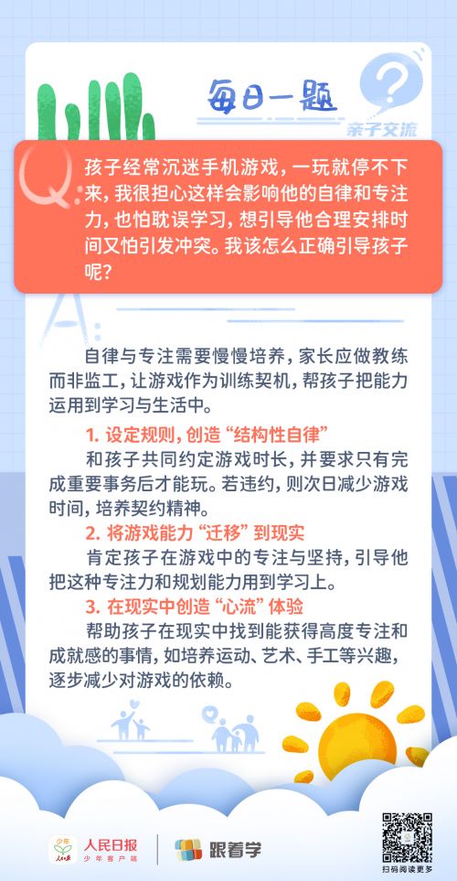 每日一题丨孩子沉迷游戏,该如何培养自律与专注力?