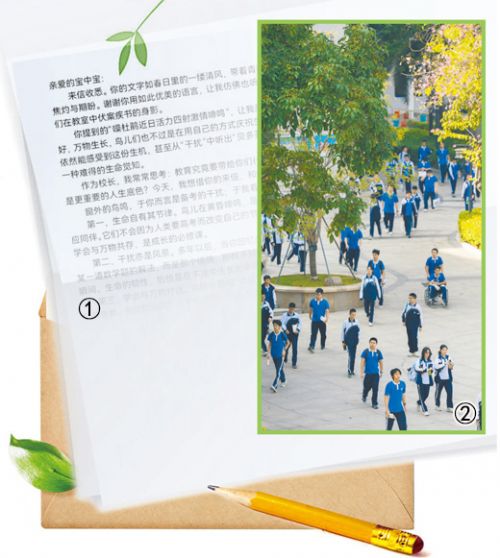 位于三楼的校长办公室几乎常年不锁门,且通过连廊与高中部教学楼连通。平日里推门而入的学生,有课间来聊心事的,也有来提建议的。校长不在,在办公桌上放一封信,也是学生与袁卫星之间交流的常见方式之一。