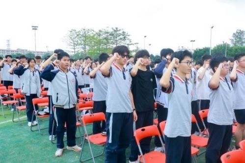 在一片欢欣的氛围里,朝晖高级中学正式颁发了首届“荣誉校董”和“家校共育特聘顾问”聘书;师生宣誓的声音响彻校园。全体师生举起右拳,立下立德树人、勤学笃行的誓言。他们目光灼灼,誓言掷地有声,他们的声音汇成了一股声浪,在操场上空久久回荡;在仪式最后,领导嘉宾与师生代表合影留念。快门按下,这一历史性时刻被永远定格,成为朝晖新征程上最浓墨重彩的开端。至此,广州市朝晖高级中学揭牌仪式圆满落成。