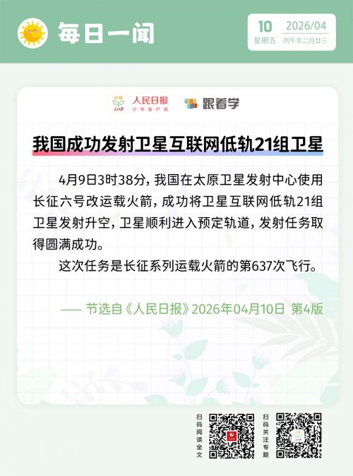 每日一闻丨我国成功发射卫星互联网低轨21组卫星